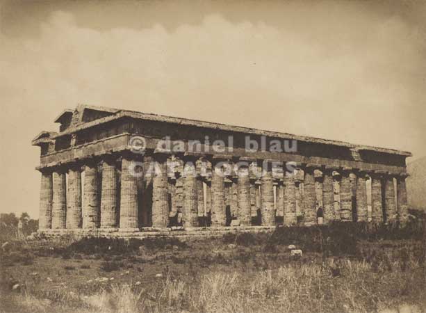 "Tempio di Posidone, Paestum", c. 1853 (coated?) salt print from paper and glass (clouds) negative on original mount 23,8 x 23,4 cm